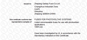 GALAXY YRPV-35 EN 60269-6 certificata 35A fusibile collegamento a bassa resistenza di contatto per il tetto PV array solare PV fusibile Link